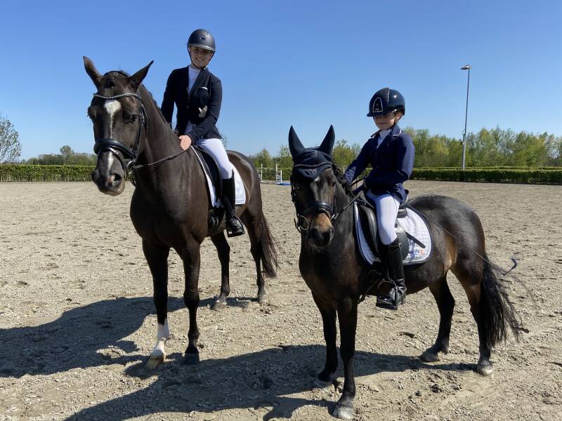 Het was vandaag zonnig weer maar wel met een hard windje buiten in de rijbak. Wel was deze top geprepareerd door Jarno waardoor veel meiden van stal hun wedstrijdproefje gingen rijden. Ik had nog niet ingeschreven voor een volgend online event maar besloot wel lekker mee te doen en zeker met die wind was het goed voor de ervaring van Basje en mij. Daphne en ik hadden samen afgesproken en gingen ook knotten en zorgen dat het er super netjes uit ging zien! Net alsof we op echte wedstrijd zouden gaan. Alleen het stukje op de trailer konden we overslaan. Het inrijden deden we in de binnenbak waarna we samen naar buiten gingen en daar de laatste puntjes op de i gezet hebben. Het proefje ging voor ons allebei naar tevredenheid en zo hebben we deze thuis wedstrijd afgesloten met de paardjes in de paddock en de wei. Was weer een super gezellig dagje met iedereen. Op naar de volgende en tot snel iedereen!